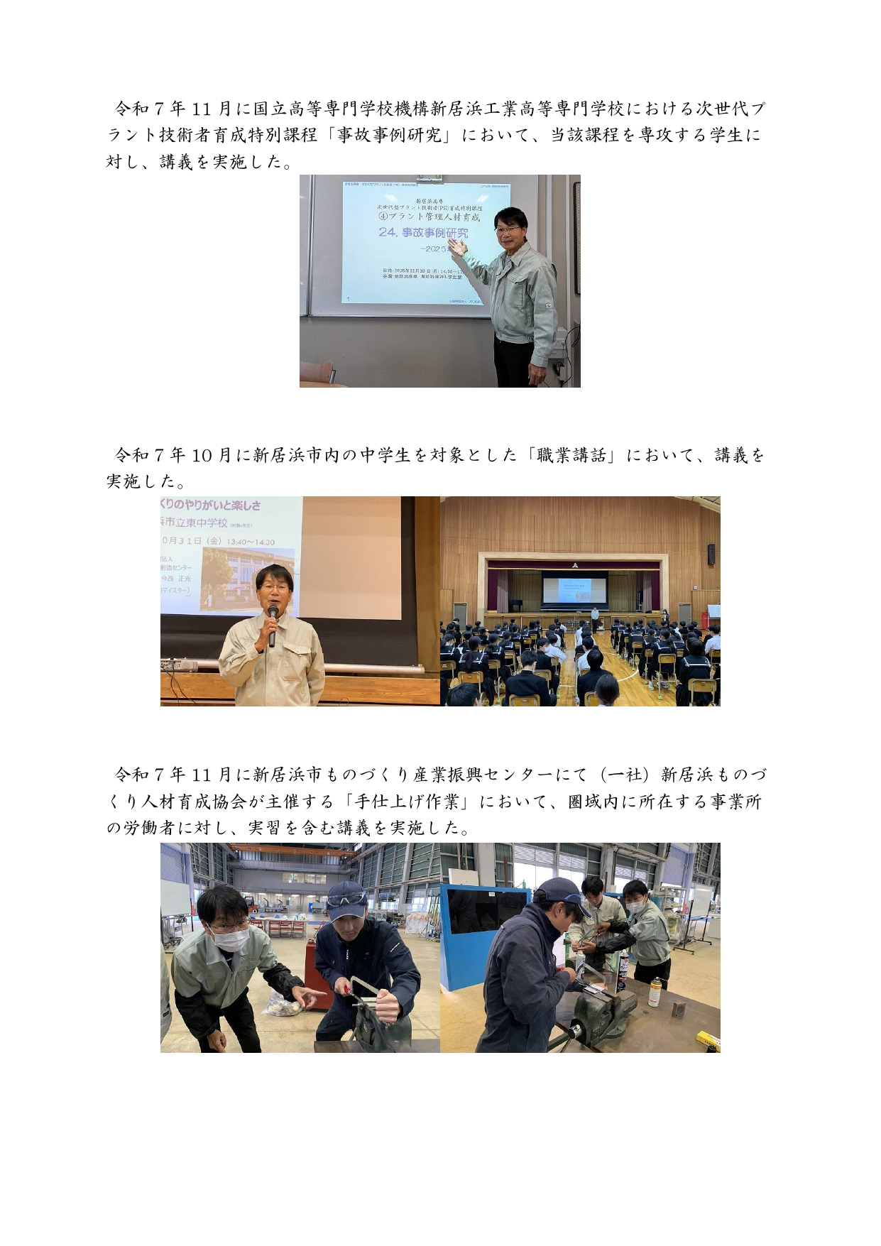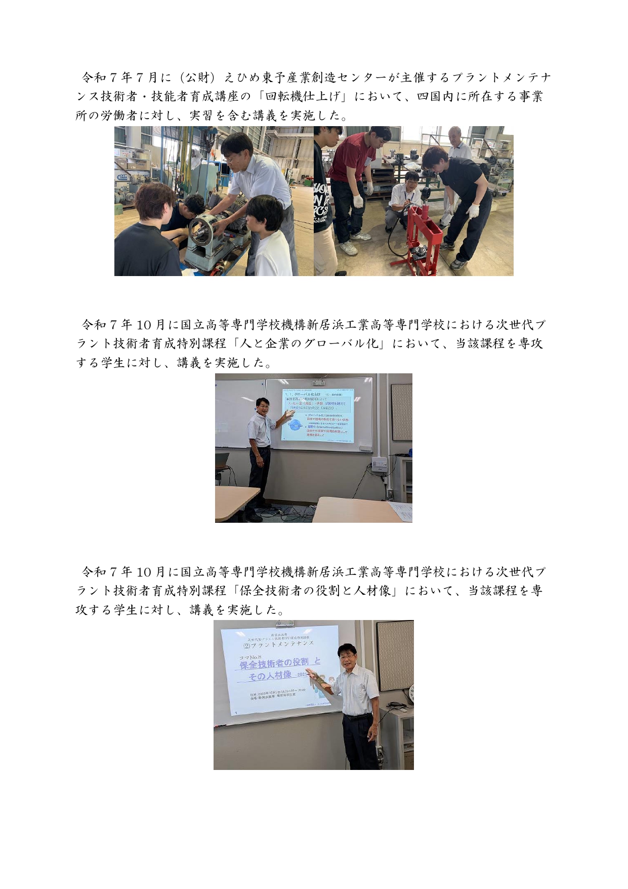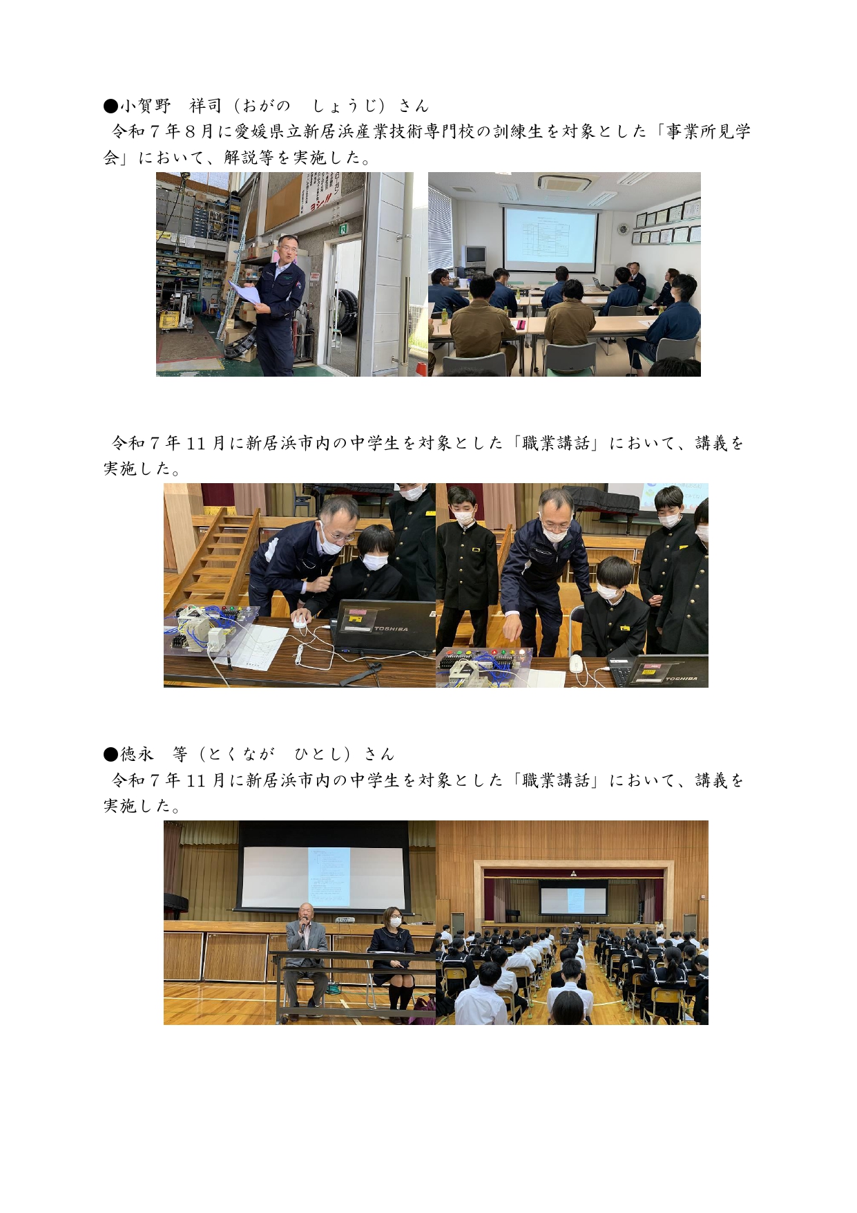 - 令和7年度に行った新居浜ものづくりマイスター活動は以下の通りです。(pdfファイルはこちら)
