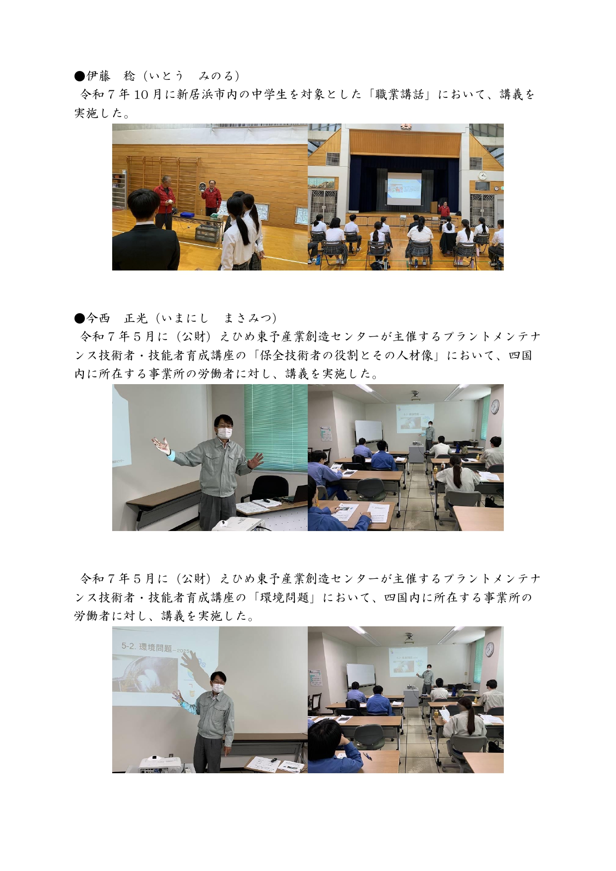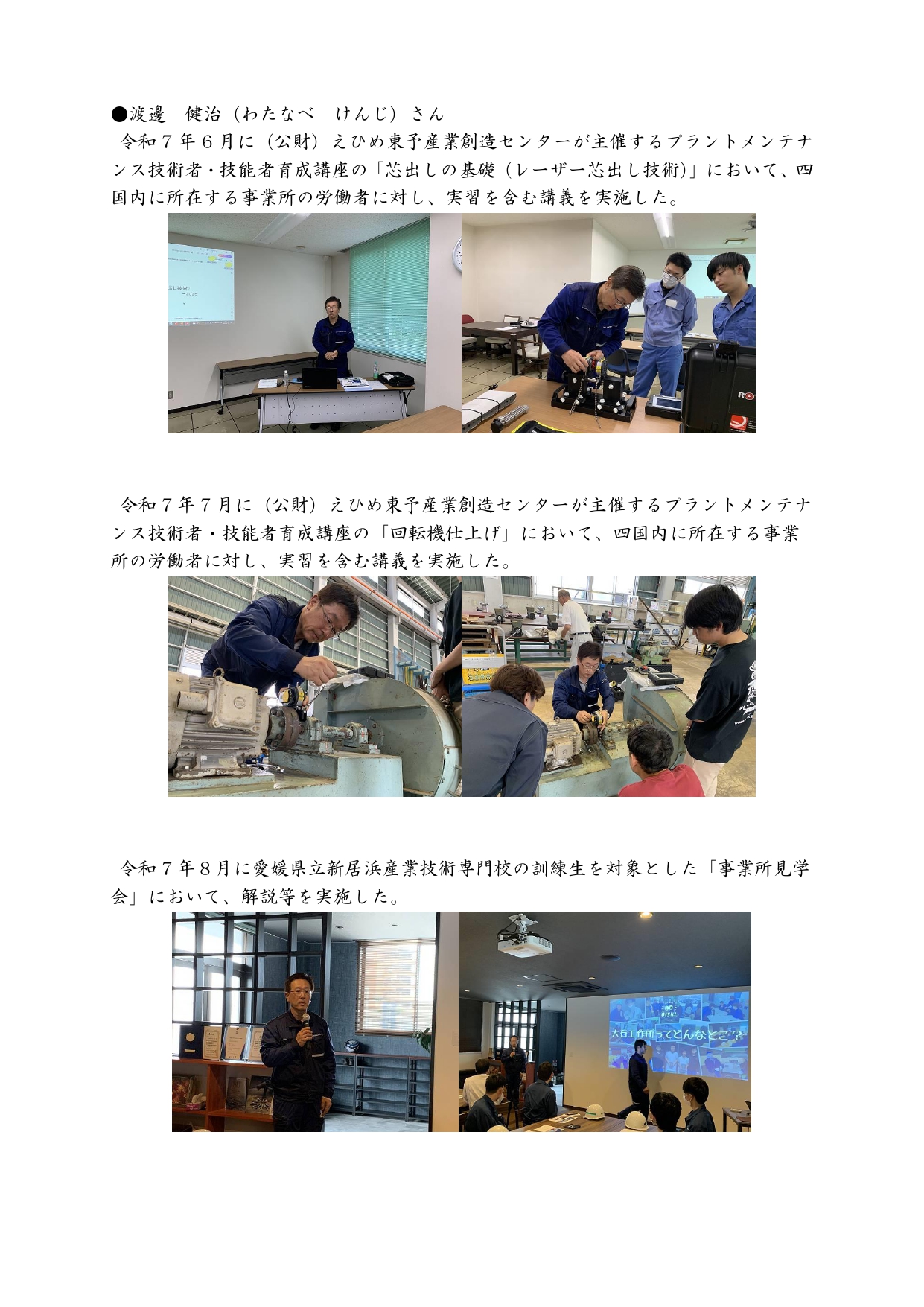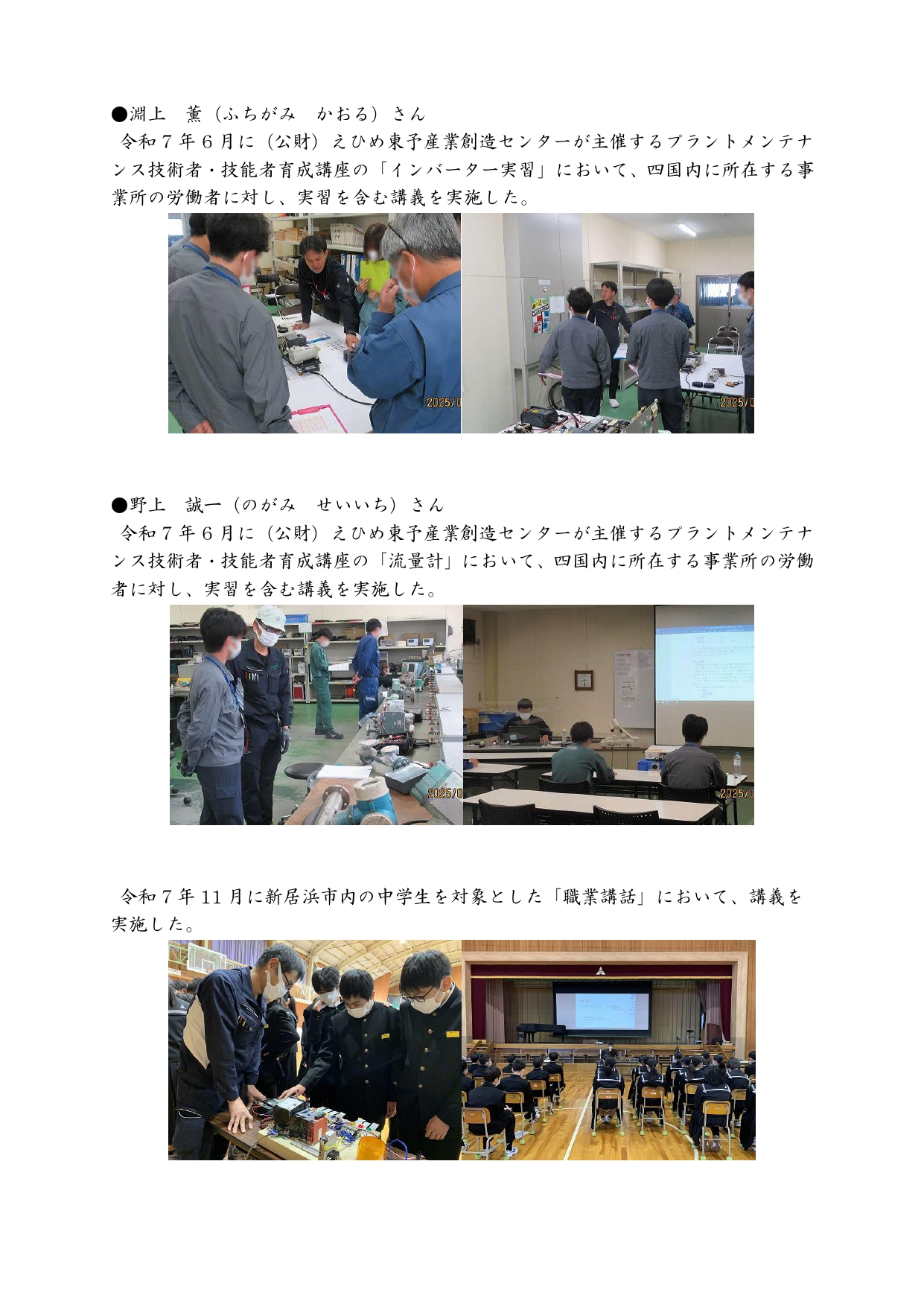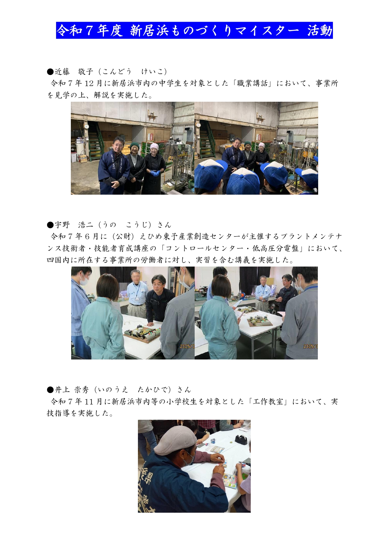 - 令和7年度に行った新居浜ものづくりマイスター活動は以下の通りです。(pdfファイルはこちら)
